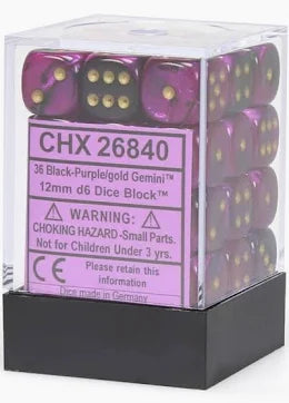 Chessex - 12mm d6 Dice Block - Black-Purple/gold