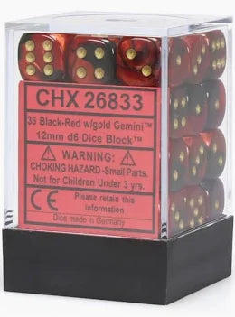 Chessex - 12mm d6 Dice Block - Black-Red/gold
