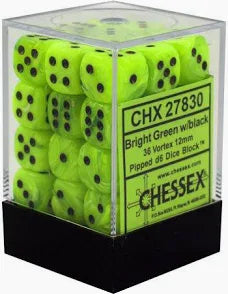 Chessex - 12mm d6 Dice Block - Bright Green/black