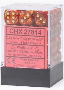 Chessex - 12mm d6 Dice Block - Scarlet/gold