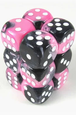Chessex - 16mm d6 Dice Block - Black-Pink/white