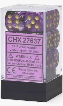 Chessex - 16mm d6 Dice Block - Black-Purple/gold