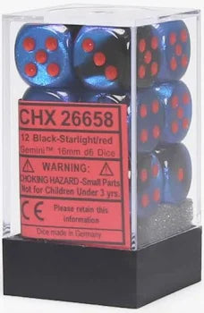 Chessex - 16mm d6 Dice Block - Black-Starlight/red