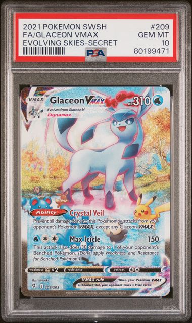 Pokémon - Evolving Skies - Glaceon VMAX FA Secret #209 - PSA GEM MT 10 - 2021